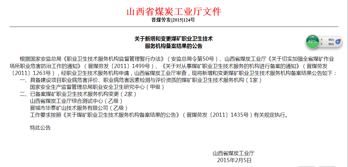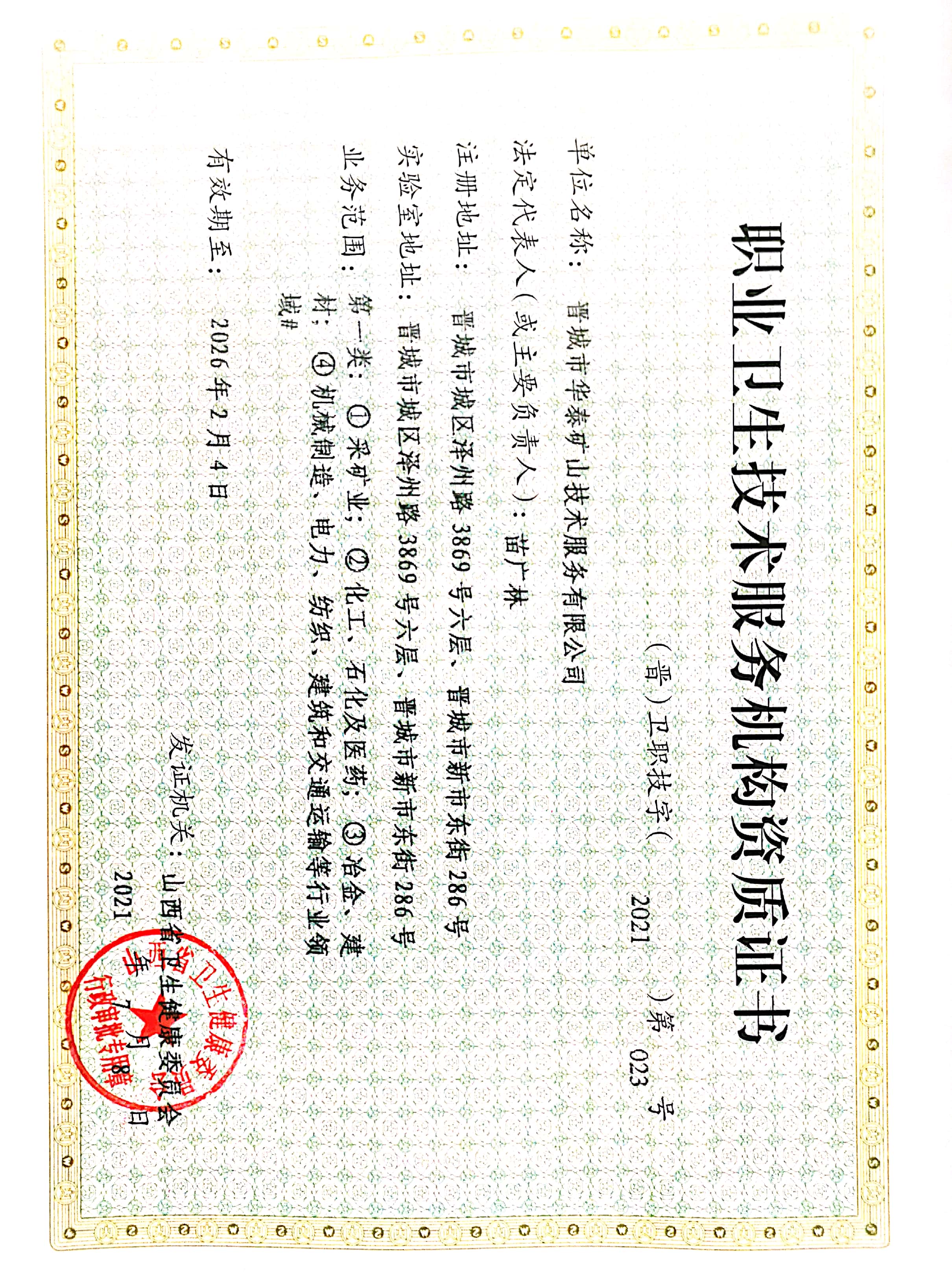 晉城國(guó)投華泰科技有限公司(以下簡(jiǎn)稱華泰公司)是一家經(jīng)營(yíng)性國(guó)有企業(yè),注冊(cè)資金1000.2萬元(由晉城市華泰礦山技術(shù)服務(wù)有限公司和晉城澤泰安全技術(shù)服務(wù)有限公司合并整合組建,國(guó)投全資)。公司持有山西省衛(wèi)生健康委員會(huì)頒發(fā)的《職業(yè)衛(wèi)生技術(shù)服務(wù)資質(zhì)證書》、山西省應(yīng)急管理局頒發(fā)的《安全評(píng)價(jià)機(jī)構(gòu)資質(zhì)證書》和山西省市場(chǎng)監(jiān)督管理局頒發(fā)的《檢驗(yàn)檢測(cè)機(jī)構(gòu)資質(zhì)認(rèn)定證書》等資質(zhì),設(shè)施設(shè)備、能力、資質(zhì)配套齊全。...【詳細(xì)信息】